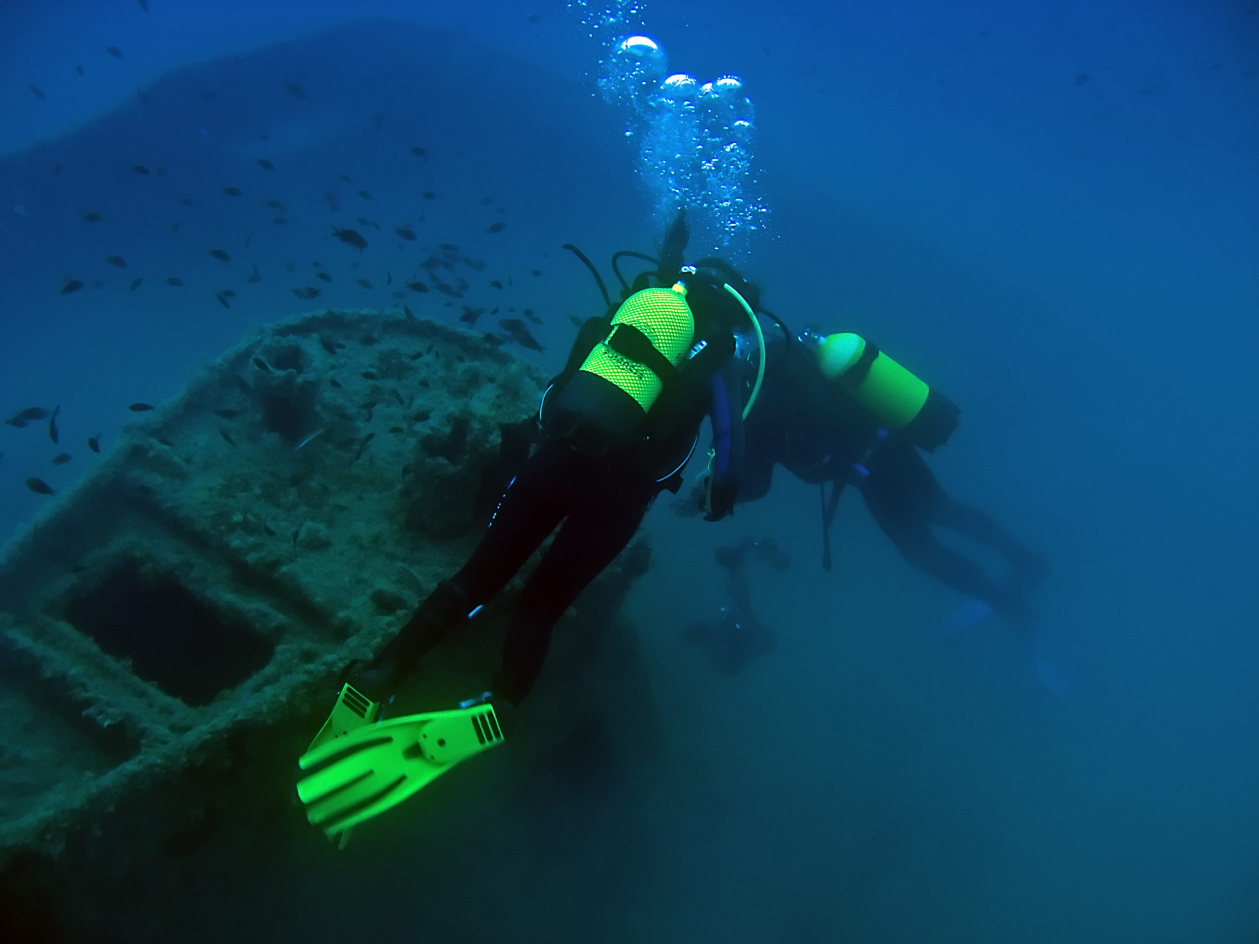 En nuestros fondos podrás visitar zonas de fondos rocosos, donde abundan los sargos, corvas, morenas, y resto de especies habituales de fondos rocosos, zonas de inmersión accesibles para todos los niveles. Contamos con pecios accesibles en 20 metros de profundidad, o pecios hundidos durante la Guerra, que nos regresan al sumergirnos en él, al pasado.